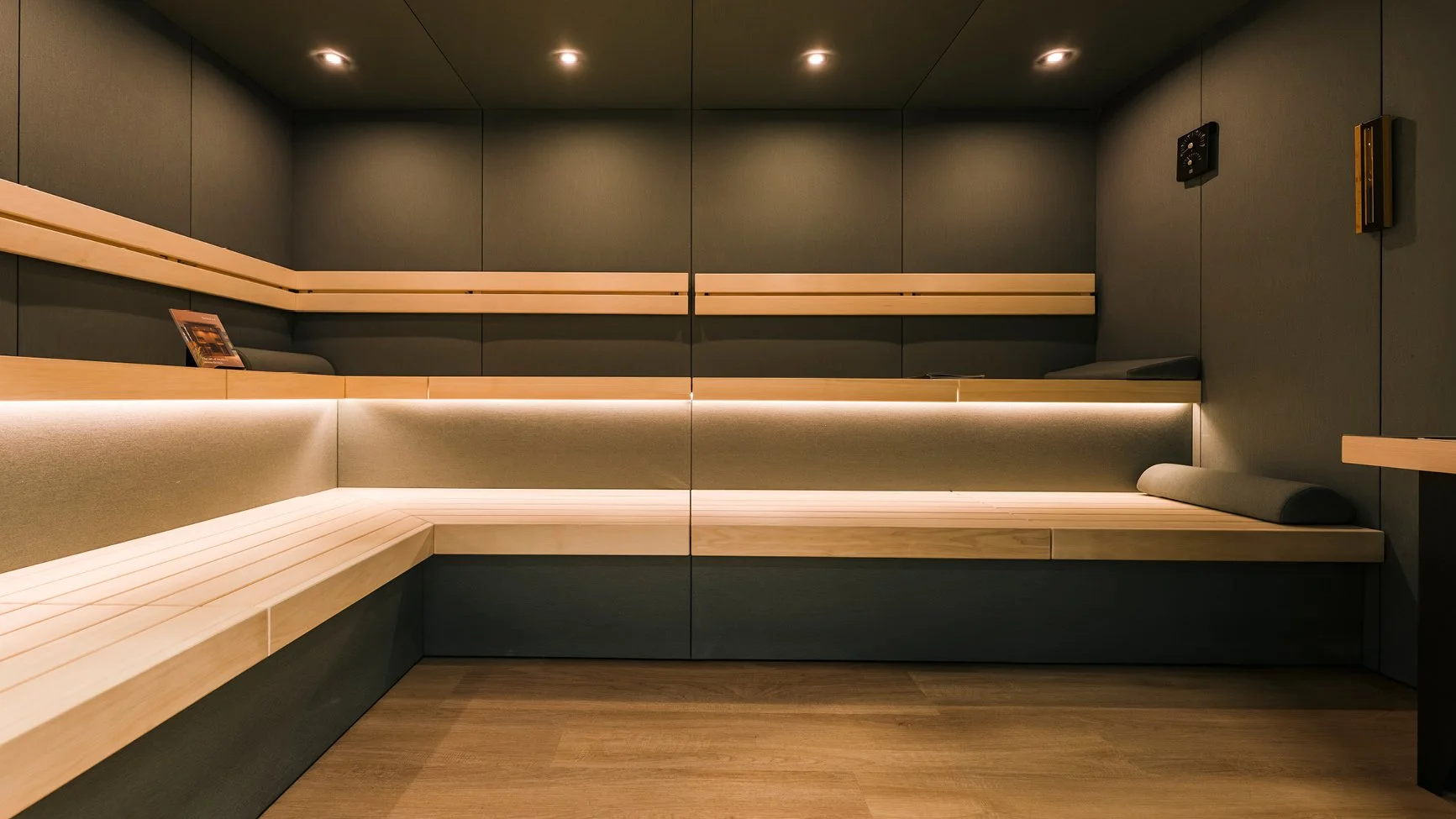 Die in der Sauna verwendeten Funktionsstoffe sind auf höchste Hygiene ausgelegt und im Vergleich zu herkömmlichem Holz leichter zu reinigen. Im Allgemeinen genügt ein einfaches Abwischen mit einem feuchten Tuch, ähnlich wie beim Reinigen von Möbeln. Die technischen Acrylfasern sind wasserabweisend und nehmen weder Bakterien noch Gerüche auf. Auch bei häufigem Einsatz in gewerblichen Saunakabinen bleiben die Stoffe pflegeleicht und langlebig. Im unwahrscheinlichen Fall einer Verschmutzung empfehlen wir zur wirksamen Entfernung die Verwendung einer milden Seifenlösung und eines Reinigungstuchs.