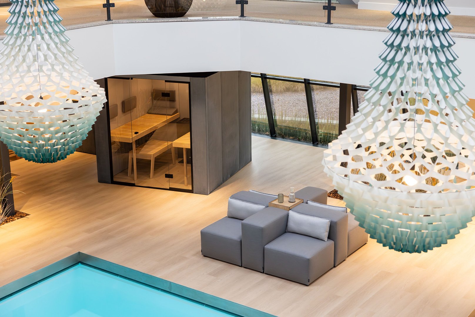 Die in der Sauna verwendeten Funktionsstoffe sind auf höchste Hygiene ausgelegt und im Vergleich zu herkömmlichem Holz leichter zu reinigen. Im Allgemeinen genügt ein einfaches Abwischen mit einem feuchten Tuch, ähnlich wie beim Reinigen von Möbeln. Die technischen Acrylfasern sind wasserabweisend und nehmen weder Bakterien noch Gerüche auf. Im unwahrscheinlichen Fall einer Verschmutzung empfehlen wir zur wirksamen Entfernung die Verwendung einer milden Seifenlösung und eines Reinigungstuchs.