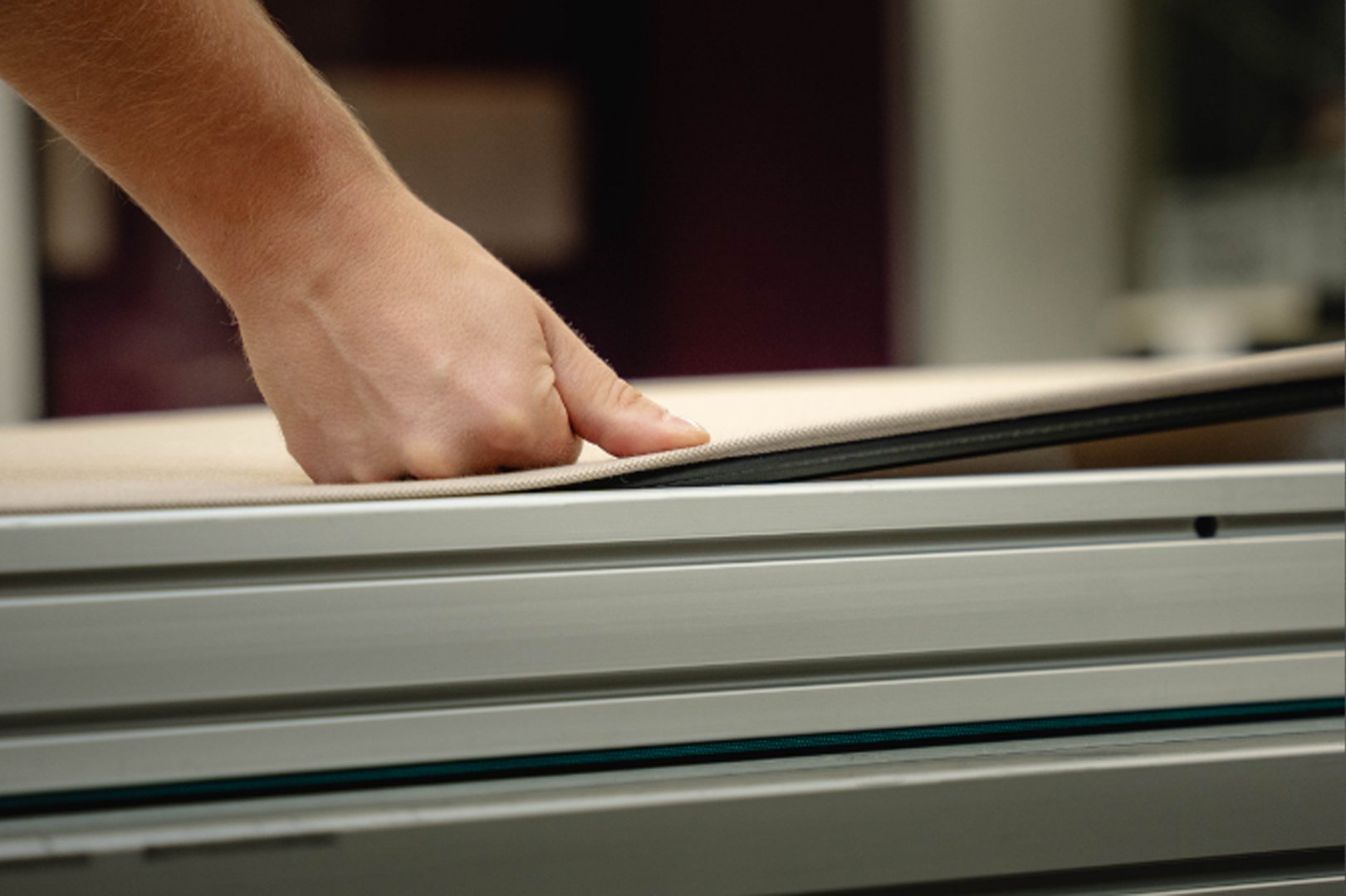 InnoZen is the only supplier of sauna cabins made of functional fabrics. This innovative approach is patented. Our functional fabrics are precisely inserted into the aluminium profiles, a process developed by kyuno that represents the highest quality and adaptability.