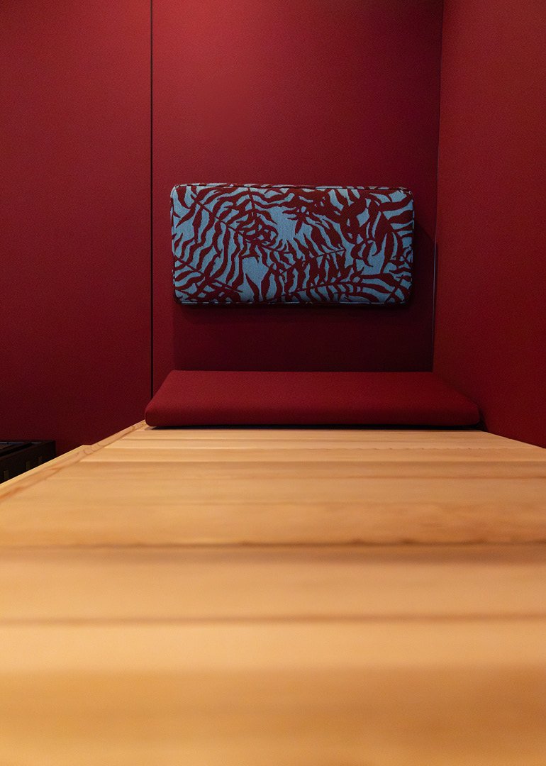The performance fabrics we use have all the properties required in saunas. They are not only temperature-resistant but also free from harmful substances and are skin-friendly. Naturally, they don’t absorb odours but are water-repellent and easy to care for. We use the same fabrics for the back cushions as for the sauna cabin itself. Since there is direct skin contact, the back cushions can be removed and the covers exchanged. They can be cleaned in the washing machine as needed.
